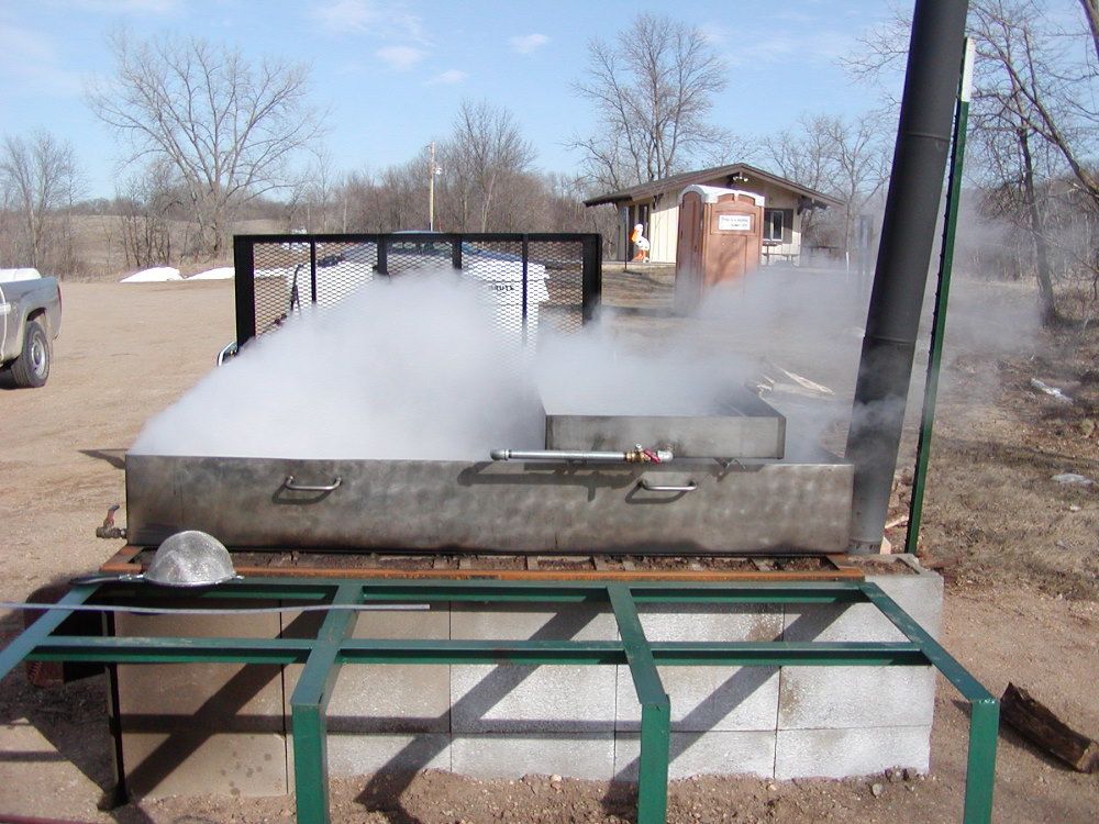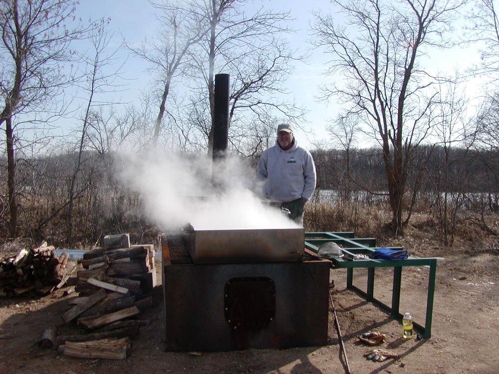 Maplewood State Park was busy with elementary students on May 17, 18, and 19 as classes from different communities came to Maplewood to learn about maple syrup and how it is made. First let me explain that we know maple sap season is over, but we have learned that you can teach about making maple syrup anytime, and it is much nicer for the students if they can come when the snow is gone, so they don’t have to stand around and shiver and walk through all those mud puddles. Or much to the teacher’s worry, they end up jumping in them.